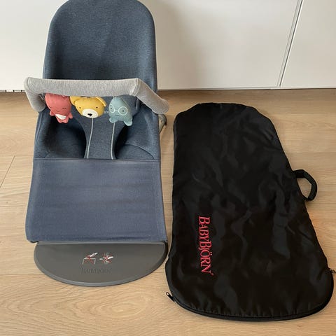 Vurderer salg av en babybjørn vippestol med leke. Må hentes på Åse eller sendes dersom kjøper betaler frakt. Trekket trenger nok en vask. Nypris med leke er ca 2500kr.