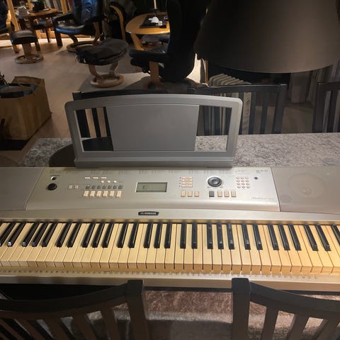 Vi har også et akustisk piano, og ser at dette blir mest brukt. Selger derfor dette for å frigjøre litt plass.