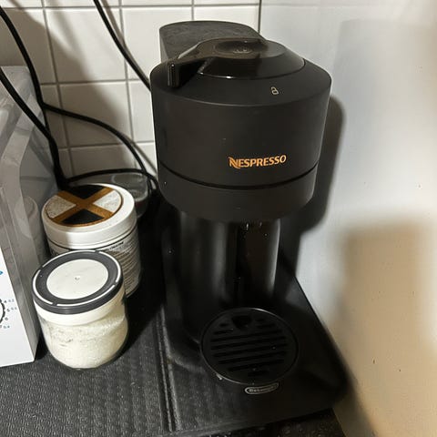 Nespresso kapselmaskin i svart utførelse. Maskinen er kompakt og tar liten plass på kjøkkenbenken. Den har avtakbar vanntank bak og dryppbrett foran. Maskinen bruker Nespresso-kapsler og er egnet til tilberedning av enkle kaffedrikker som espresso og lungo. Passer for bruk hjemme eller på kontor der man ønsker enkel tilberedning av kaffe med kapsler.