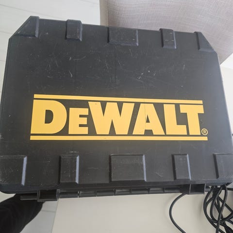 Sagen leveres i original plastkoffert med plass til maskin, blader og tilbehør. Leveres med 3 blader (DT2350) hvorav ett er godt brukt.