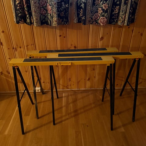 Egnet som støtte til arbeidsbord, plater eller annet materiale ved ulike typer arbeid ute eller inne. Leveres som sett med to bukker.