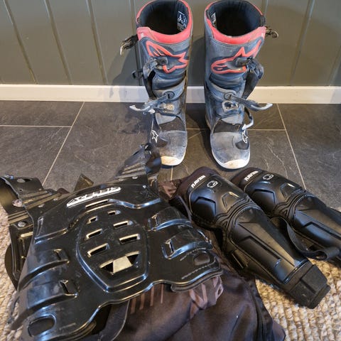 Godt brukte crosstøvler str 32 og bukse til barn.