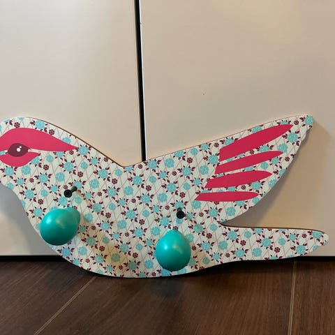 2 stk skilt til barn- 1 stor gråmalt fugl/pingvin/ugle m knagg.