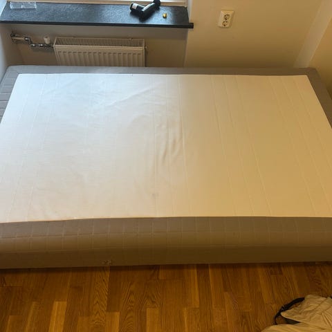 IKEA Skotterud 120 seng i grått trekk med treben. Egnet som enkeltseng på soverom eller gjesterom.