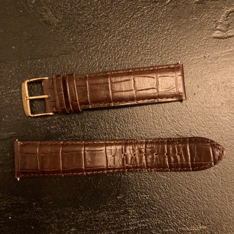 Ubrukt lærreim fra kvalitetsmerket Hirsch. Croc mønster, mørk brun. 19mm