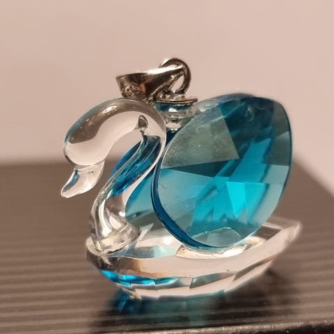 Svanen er gullfarget med en stor smykkesten som kropp.