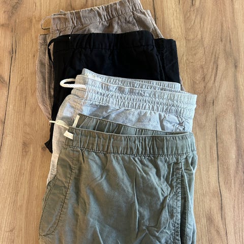 Jadet str XL: 1 hvit linbukse, 3 bomullsbukser (hvit, grønn, svart)