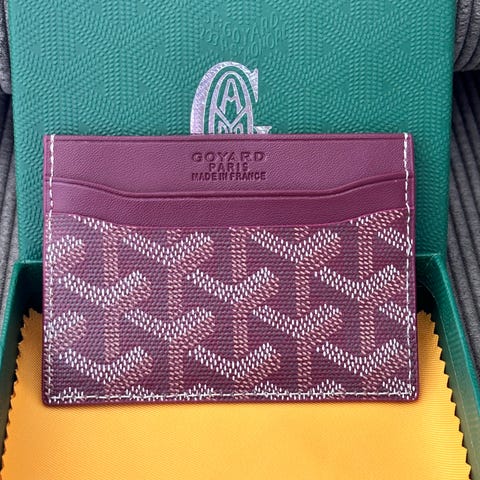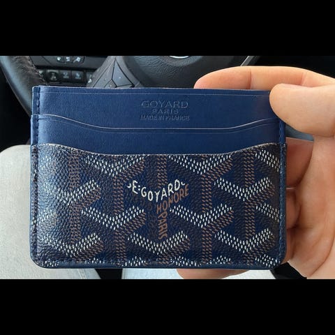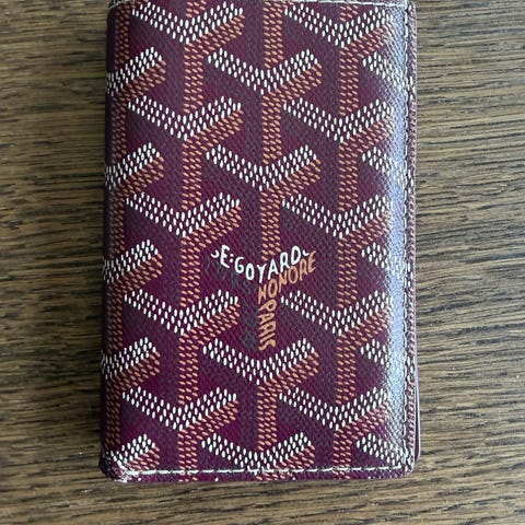 Goyard kortholder i lær for unisex. Kortholderen er i blå farge med karakteristisk Goyard-mønster. Den har flere kortlommer på begge sider, egnet for oppbevaring av betalingskort, ID-kort og lignende. Leveres med original eske som vist på bildene.