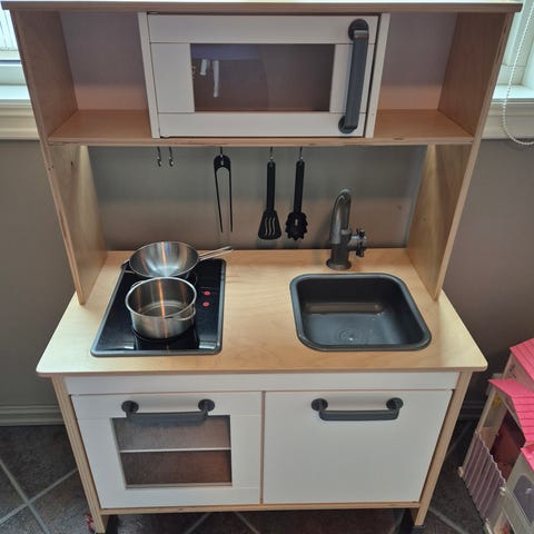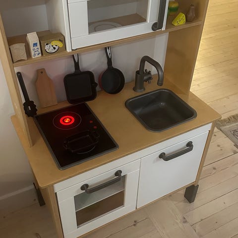 Veldig kjekt lekekjøkken fra IKEA selges. Det er noen få bruksmerker på kjøkkenet (se bilder), men det er i veldig god stand. Masse bruk igjen : - ) Kokeplatene virker ikke.