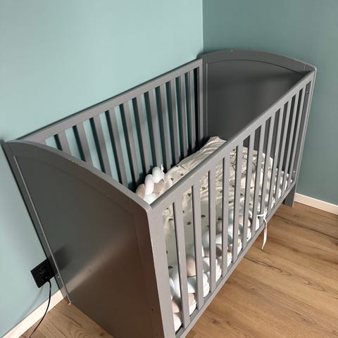 Praktisk løsning på ene langsiden hvor man kan senke veggen for å lettere legge ned/hente ut babyen. En funksjon som mangler på mange sprinkelsenger på markedet. Denne funksjonen gjør også at man kan bruke sengen som en bed side crib om ønskelig.