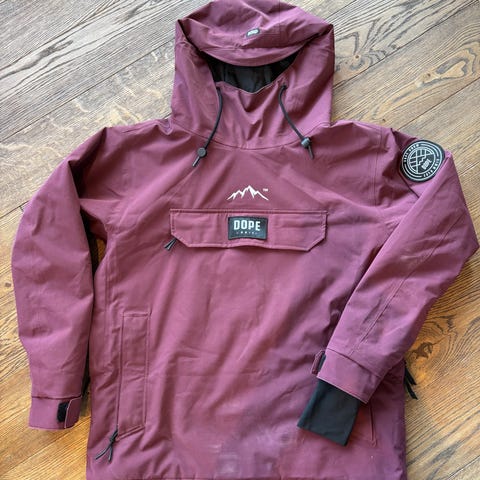 Dope TNP anorakkjakke for dame i størrelse S. Jakken er i en lys lilla farge. Modellen har hette med snøring, stor kengurulomme foran med glidelås i sidene og strikk nederst på ermer og i nederkant. Passer til fritidsbruk og ulike utendørsaktiviteter.