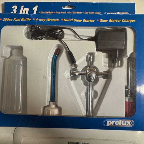 Motoren leveres med original eske og tilbehør som vist på bildene, inkludert håndbok og motorkort. Konstruksjonen er i metall med røde detaljer på veivhus og spinner. Dette er en klassisk modellmotor for hobbybruk der man ønsker en liten dieselmotor til modeller.