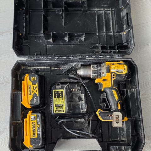 Selger en DeWalt DCD708 18V XR Brushless drill med 5.0Ah batteri og original DCB1104 (4A) lader.