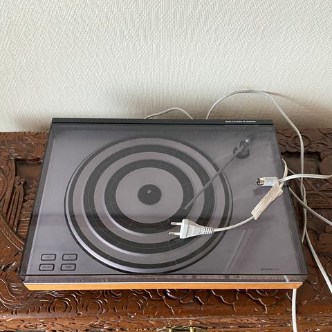 Bang & Olufsen platespiller for avspilling av vinylplater. Spilleren har støvlokk og standard tilkoblingskabler for tilkobling til forsterker eller receiver. Egnet for bruk i hjemmeanlegg for analog musikkavspilling.