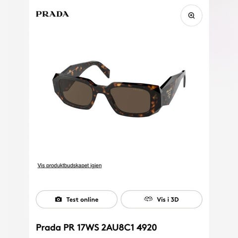Godt brukte Prada 17WS Tortoise (Havana/Brun). Har noen småriper i glasset pga bruk, men synes ikke på avstand. Etui følger med.