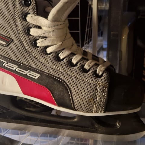 Canada ishockeyskøyter for barn i størrelse 34. Skøytene har overdel i tekstil og syntetisk materiale i grå, hvit og rød farge med snøring foran. Polstret innside og tunge for økt komfort rundt ankel og fot. Egnet til ishockey og generell skøytebruk på isbane for barn i aktuell skostørrelse.