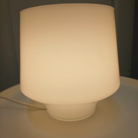 IKEA LYKTA bordlampe i hvitt opalglass. Gir et jevnt og behagelig lys og passer fint som nattbordslampe, på skjenk eller som ekstra belysning i et hjørne.
