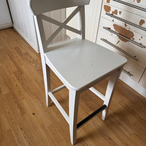 Godt brukte barstoler selges til første som kan hente. Selges pga flytting. Bruksmerker synlig på klosshold, men ikke på avstand. Stødige. Per stk 350
