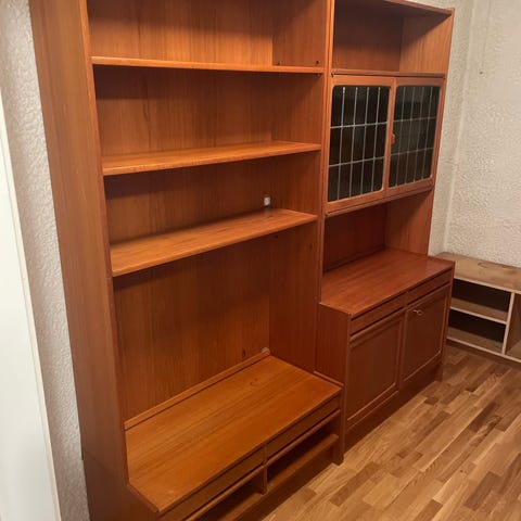 Den midtre seksjonen har det vært festet tv i, og det er derfor et par hull i bakplata.