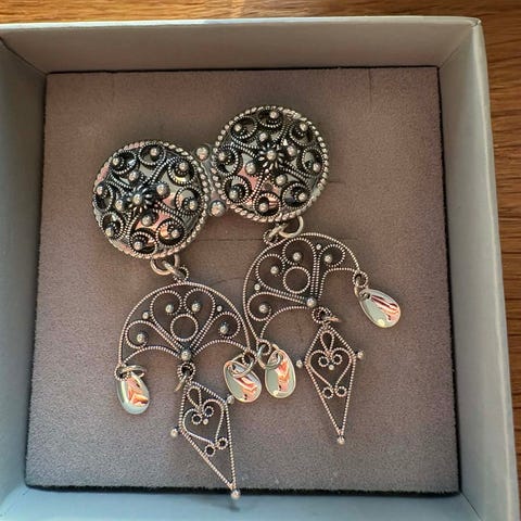 Sylvsmidja sølv bunadsølje og et par matchende øredobber.