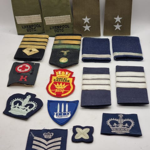 Selger en original militær insignia fra det britiske regimentet The Royal Scots. Laget i metall (messing) med fin patina, tydelige detaljer og kongelig krone. Dette er en autentisk regiment-badge, sannsynligvis fra perioden ca. 1910–1950.