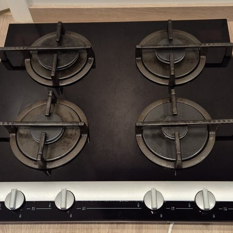 Siemens gasskoketopp med fire gassbluss og integrerte betjeningsknapper i front. Koketoppen er nedfelt i benkeplate og har støpejernsrist over brennerne. Passer for innbygging på kjøkken der det er tilkobling for gass. Farge: svart.
