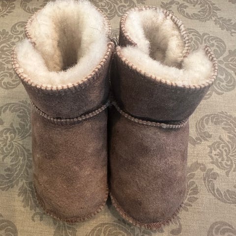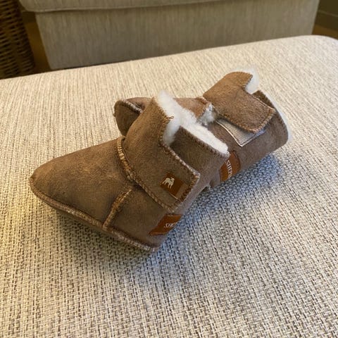 Godt brukte Sheperd sheepskin babytøfler. Brukt her opp til ca 1,5 år.