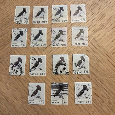Frimerker - frimerke - frimerkesamling - samling - verdisamling - verdi - aktivitet - hobby - interesse - dompapen - norsk motiv - norsk fugl