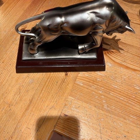 Okse dekorasjo av en okse som ser ut som den aldri hopper over bendag eller brystdag. Med svulmende muskler, en heroisk holdning og horn som skriker «ikke tull med meg», er dette skulpturerte dyret klart til å storme inn i aksjon