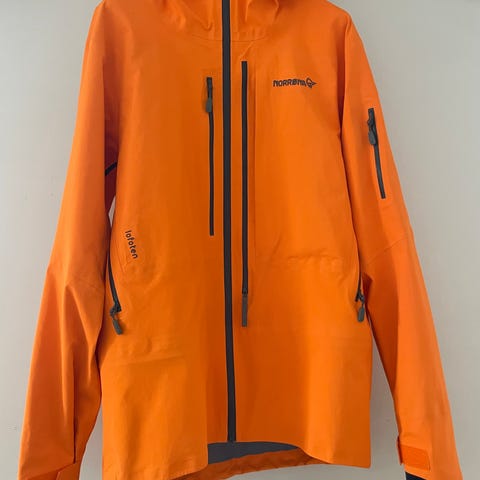 Norrøna Lyngen jakke for herre i størrelse XL. Jakken er oransje og laget i Gore-Tex-materiale. Den har fast hette og flere glidelåslommer i front. Gore-Tex-materialet gjør jakken vindtett og vanntett samtidig som den er pustende. Egnet som ytterjakke til tur og friluftsbruk i varierende værforhold.