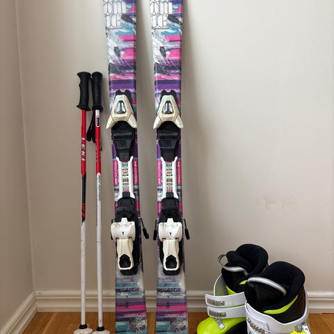 Brukt to turer i trekket. Komplett pakke med ski, bindinger, staver, hjelm og sko.