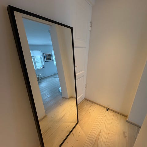 IKEA STAVE speil i helfigur med treramme. Rektangulært speil som kan henges på vegg. Rammen har trelook og gir et nøytralt uttrykk som passer i for eksempel gang, soverom eller garderobe. Speilet er egnet til helkroppsvisning og kan kombineres med annen oppbevaring eller innredning etter behov.