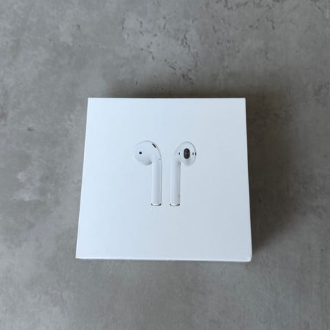 Apple AirPods trådløse ørepropper i hvit farge. Produktet består av to separate ørepropper med ladeetui og ladekabel, slik det vises på bildene. AirPods kobles trådløst til kompatible enheter via Bluetooth og leveres i original eske med innmat. Egner seg til lytting av musikk, tale og annen lyd fra kompatible telefoner, nettbrett og datamaskiner som støtter trådløs tilkobling.