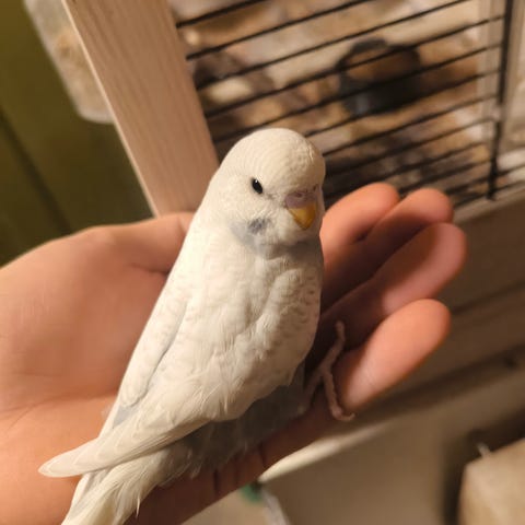 Ei albino hunn, helt hvit. Hun er 2 år gammel. Ble håndoppmatet som liten og var ekstremt tam. Desverre så har hun opplevd traumer med sin partner som napper, og jeg har desverre ikke tid til å få opp tilliten hennes igjen. Får henne på fingeren, men hun hyler plutselig til og er engstelig. Har prøvd å tilrettelegge for å kunne beholde dem begge fordi de betyr mye for meg, men har funnet ut at det beste for dem er å skilles og at dem kommer til hvert sitt hjem. De er for knyttet til hverandre og blir stresset ved å være i hvert sitt bur og han napper henne med en gang de kommer ilag ute av buret også. Jeg har tro på at hun kan bli som før om hun kommer seg vekk fra han og kan få ro, men det vil nok kreve tid og tålmodighet fra ny eier. Send gjerne pm ved interesse.