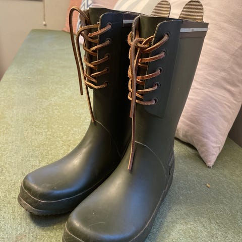 Bisgaard foret gummistøvler for barn i størrelse 34, unisex. Støvlene er i mørk blå farge med snøring øverst.