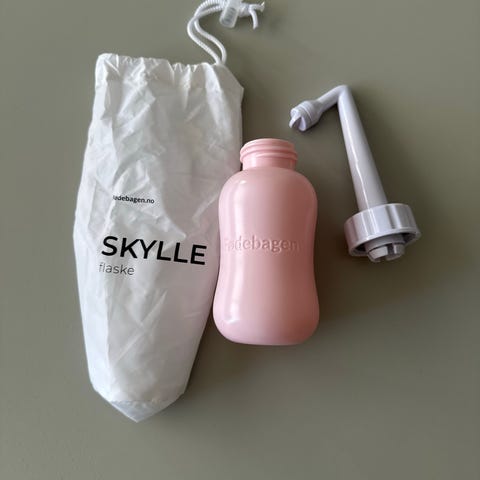 Utstyr til fødebagen (isbind, Skylleflaske osv.)