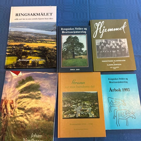 Pakke med flere bøker om lokalhistorie fra Hamar og Hedmark. Blant titlene som kan sees på bildene er blant annet «Kjære Hamar», en bok om Hamar Arbeiderparti gjennom 100 år, en bok om Hamar domkirke og bispesete, samt andre bøker med historisk og lokalhistorisk innhold. Bøkene omhandler blant annet byhistorie, politisk historie, kirke- og kulturhistorie fra Hamar-området og Hedmark. Egner seg for lesere som er interessert i lokalhistorie, samfunnsliv og utviklingen i regionen over tid.