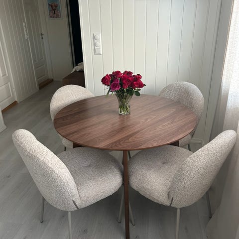 Selger disse 4 spise stolene i teddy stoff grunnet flytting, de er kjøpt i september 2025.