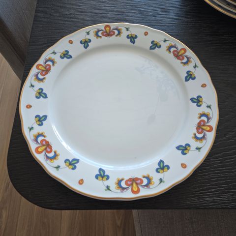 Porsgrund tallerkener hvit med flerfarget dekor porselen