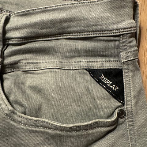 Replay Hyperflex herre i størrelse M/ W32. Grønn farge. Klassisk femlommers jeans med baklomme og skinnpatch med Replay-logo bak i linningen. Nypris 2200.-, Selges for 750,-.