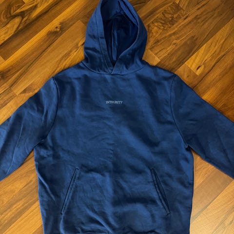 Selger en pent brukt blå hettegenser fra chosen for kr. 200. Den har ingen bruksmerker/slitasjer. Den er unisex og i størrelse M. Originalpris: kr. 599.