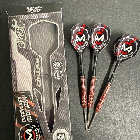 Target Japan Prime Series Diamond G3 dartpiler med stålspiss. Sett med tre piler på 22 gram, beregnet for tradisjonell dart med ståltupp. Følger med eksklusive target Japan K-flex samt swiss point tool som du kan skifte ut pilspissene dine med. Selges ettersom at jeg har mye liggende og grepet ikke helt passet min stil. Pent brukt, nypris på settet ligger på 1395kr. Kan være åpen for bytte mot andre straight barrell darts i 22-24 gram.