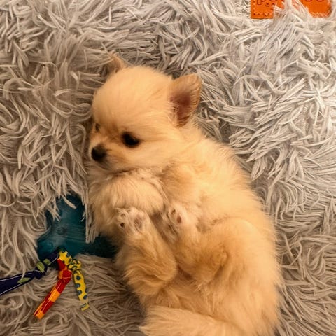 Raya er ei vidunderlig lita Pomeranian frøken på 5 uker , hun er enebarn å har både hundemamma og kattemamma som elsker henne høyt så hun er meget bortskjemt på stell kos og kjærlighet.
