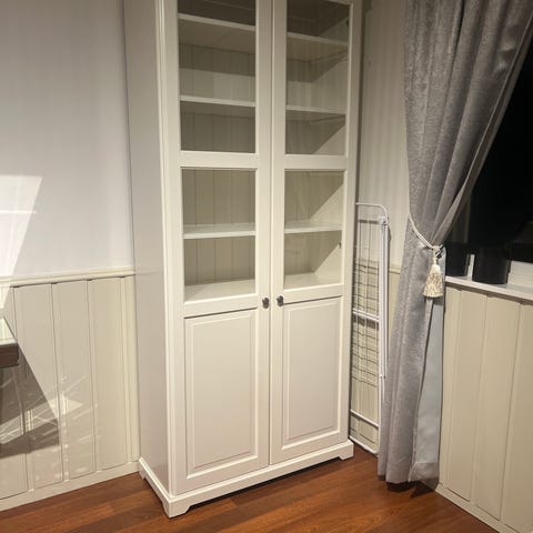 Vitrineskap hvit med glassdør og skuff