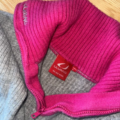 Ulvang genser i ull for dame i størrelse M. Genseren er flerfarget med brede kontrastfelt og høy hals med glidelås. Ribbestrikkede avslutninger gir en tettere passform rundt hals og ermer. Ullmaterialet gjør genseren egnet som mellomlag eller ytterste lag ved kjøligere vær, til hverdagsbruk eller tur og friluftsliv.