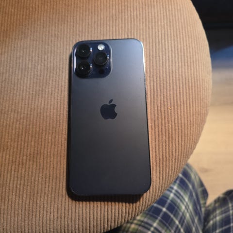 Apple iPhone 14 Pro smarttelefon med 128 GB lagringsplass. Modellen har stor skjerm med Dynamic Island og Face ID i front. På baksiden er det trippelkamera med vidvinkel, ultravidvinkel og telelinse samt LED-blits. Telefonen støtter trådløs lading og lading via Lightning-tilkobling, og har fysisk volum- og strømknapp på sidene. Egnet for bruk med eSIM og/eller fysisk SIM-kort, avhengig av variant og operatørstøtte.