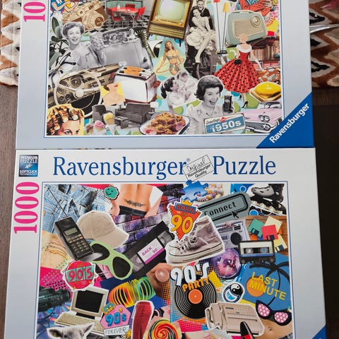 Ravensburger puslespill med collage-motiv fra 90 tallet.