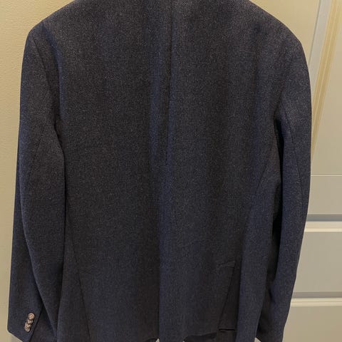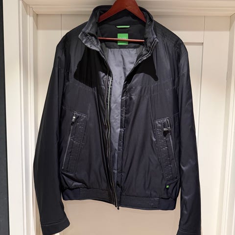 Hugo Boss herrejakke i størrelse XL. Jakken er grå og laget i ullmateriale. Den har klassisk blazerfasong med krage og slag, samt innerfôr. På innsiden er det en vattert innsats som gir ekstra isolasjon. Passer som ytterjakke eller som pen jakke over skjorte eller genser i kjøligere vær.