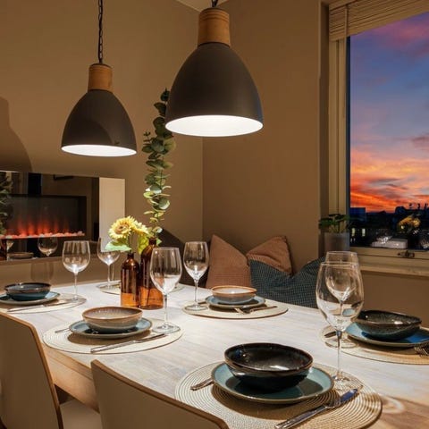 Det åpne designet gjør at pærene blir en del av uttrykket, og med dekorative filamentpærer får du et ekstra fint og lunt preg.