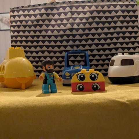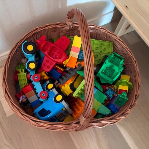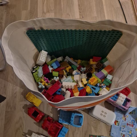 Barna har vokst fra duploen, så nå selges den videre. Flere biler, henger, båter og en motorsykkel i tillegg til mengdevis med klosser.
